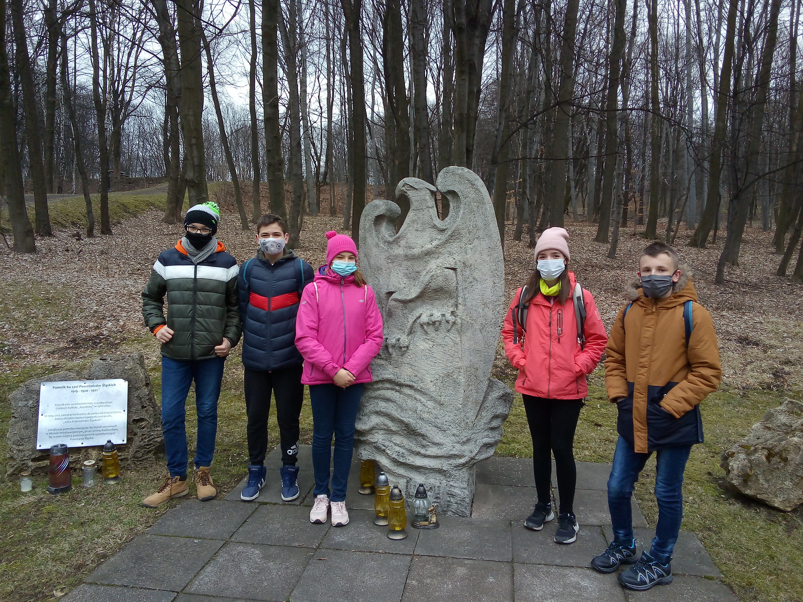 Uczniowie z klas I - III naszej szkoły aktywnie włączają się w obchody związane ze 100 leciem Powstań Śląskich. W ramach zajęć świetlicy słuchali opowiadań oraz podstawowych informacji o powstaniach. Zostały również zorganizowane zajęcia „Opowieści z pomnikiem w tle”. W czasie tych zajęć, w świetlicowym gronie czytaliśmy opowiadania o historii powstania Pomnika Powstańców Śląskich w Katowicach. Większość dzieci miała okazję wcześniej zobaczyć trzy ogromne orle skrzydła górujące nad katowickim rondem, jednak mało które wiedziało, że ich geneza odnosi się do konkretnych wydarzeń w historii naszego regionu.